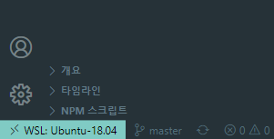 vscode를 실행합니다. 오른쪽 아래를 살펴보면 WSL: Ubuntu-18.04 에서 vscode가 실행된 것을 알 수 있습니다.