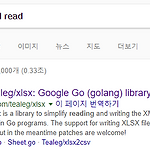 [golang] 엘라스틱서치로 우리은행 거래내역 분석하기-엑셀파일 읽기 우리은행에서 거래내역으로 다운로드 받은 파일은 엑셀파일(.xls)이다.golang에서 엑셀파일을 읽어보자. golang excel read를 검색한다. github 페이지에 접속한다. - https://github.com/tealeg/xlsx샘플을 이용하여 다운받은 엑셀파일을 읽는다.package main import ( "fmt" "github.com/tealeg/xlsx") func main() { excelFileName := "s:\\elastic\\wooribank\\과거거래내역조회2017.xls" xlFile, err := xlsx.OpenFile(excelFileName) if err != nil { fmt.Printf(..